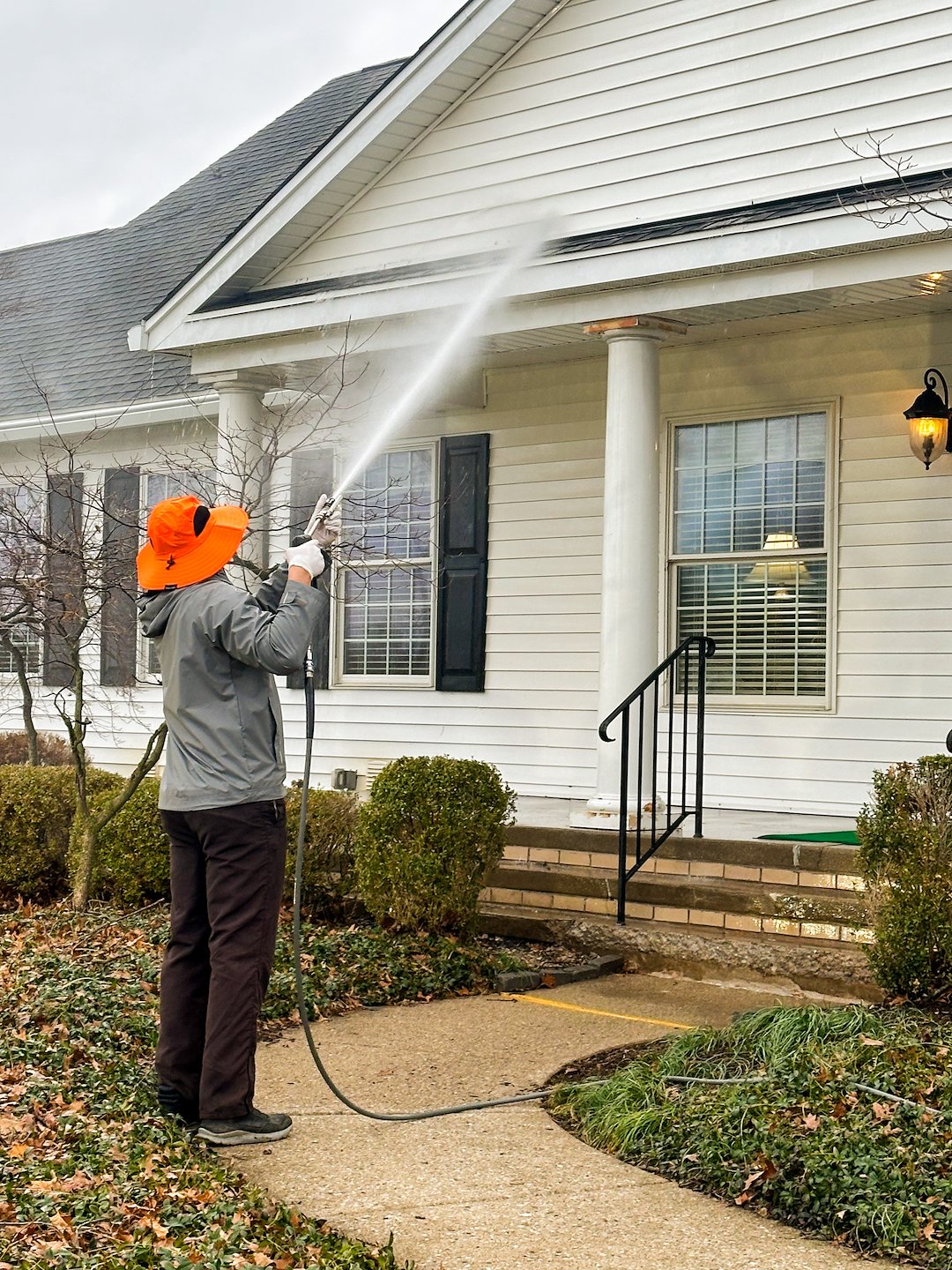 Todd R in Kettering, OH, very close to Centerville, OH, off of Farr Hills Avenue with Farhills Five Corp and his lovely office building, Howard Hanna was in need of a professional power washing company to come in and soft wash the dirt and grime that gets on the building every year or two. He contacted us in the fall and scheduled a professional exterior building washing for March to start the spring season to brighten up his exterior. We came in with our effective soft wash process to brighten up and transform the office building to make it pop, especially with that beautiful white vinyl that Todd and his colleagues want to keep bright so that when they walk into their building every single day, they feel cleanliness and peace. The company that usually came in and maintained Todd's building was no longer in business, and we stepped up to the plate and knocked it out of the park with Todd, loving the results!
