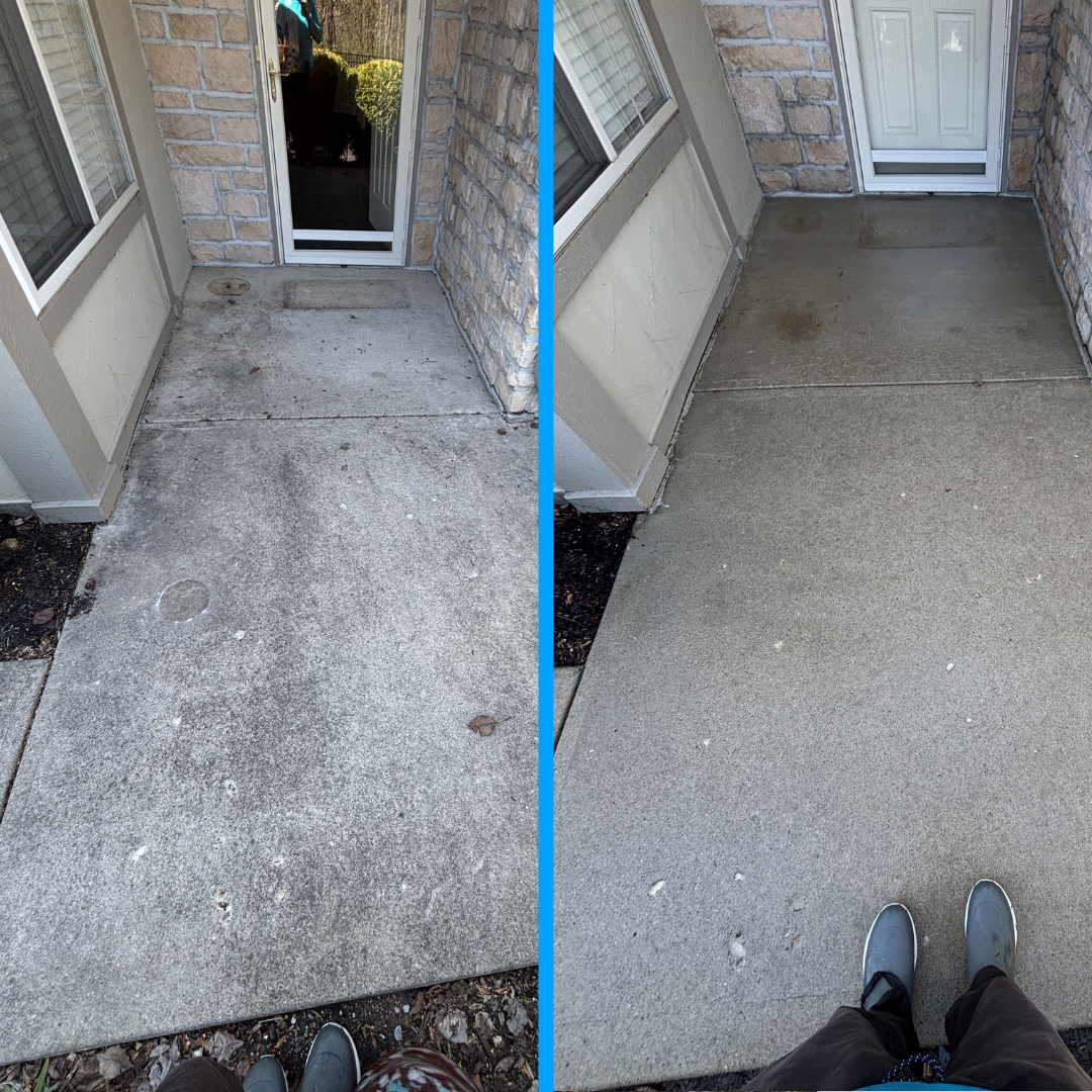 In Bellbrook, OH, our team gave Athie a service of a lifetime. We commercial surface, cleaned and rinsed her driveway and front walkway, removing all mold, mildew, algae, loose dirt/debris, and more. After the driveway washing and front walkway cleaning, this home never looked better, leaving a huge contrast from before the service to after. Our team takes pride in delivering professional service with professional commercial surface cleaning equipment and making sure every inch is always taken care of the right way. Athie's sister, Nicki, referred her to us, and we are so thankful that we're able to service not only Nicki but also Athie, helping bring each one back to life and looking its best again. Athie's home is now refreshed and restored, showing the bright colors that make the concrete feel like it's back to life, making the whole property stand out once again!
